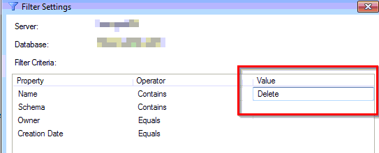 - Then SSMS shows only matching stored procedures, and now the user can select from a smaller set.